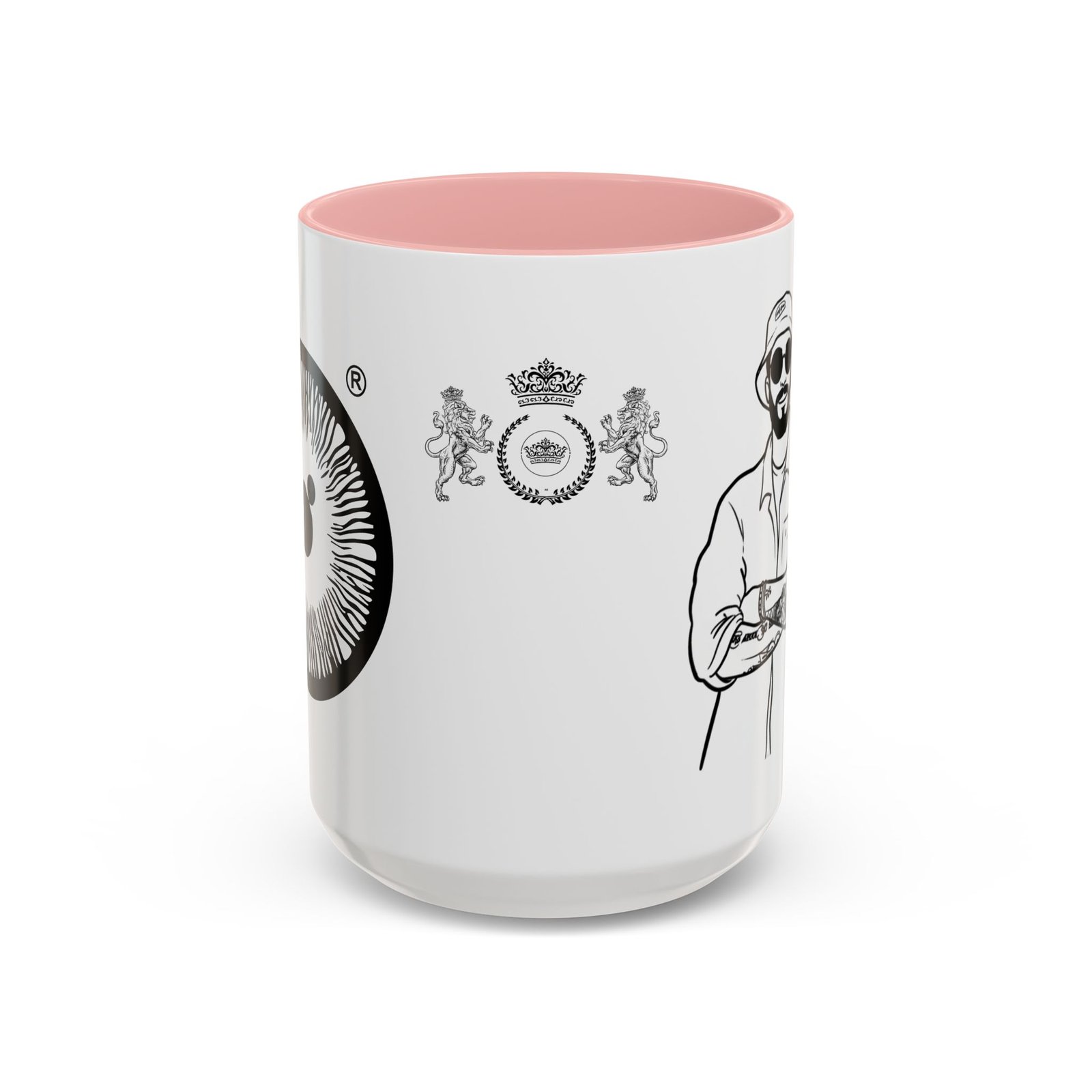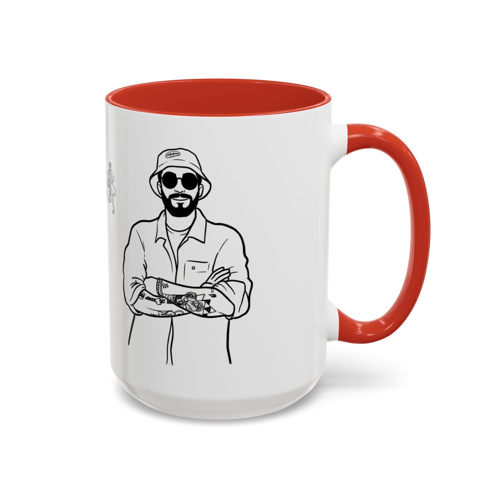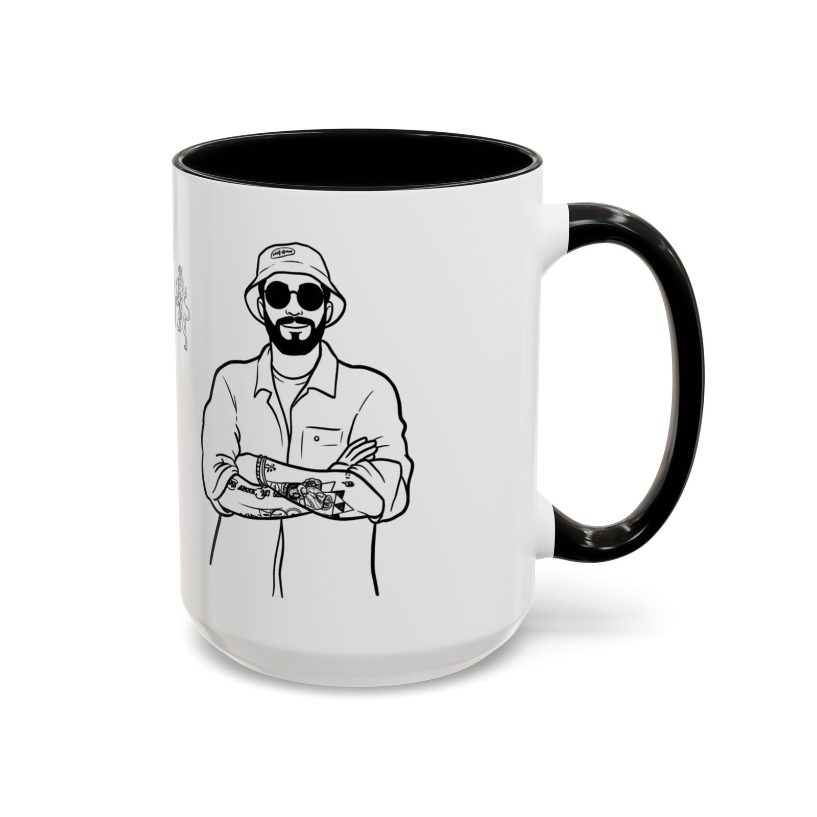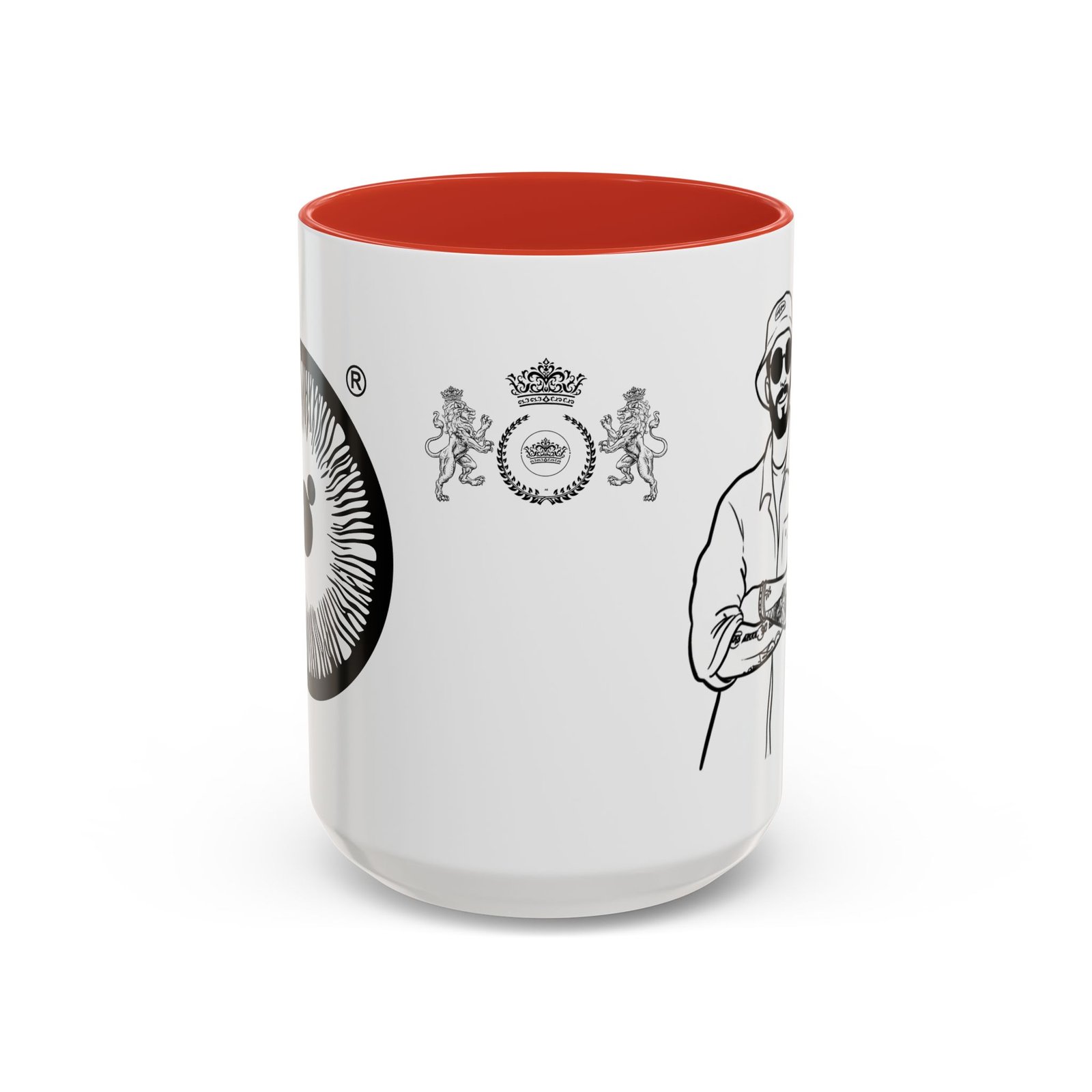 A glossy ceramic mug that brings quiet confidence to every coffee break. Clean black-and-white illustrations wrap the white exterior, while a bold colored interior and C-shaped handle add a pop of contrast. This mug feels like the studio corner where ideas form—steady, stylish, and ready for repeat use. It suits someone who savors ritual: slow morning sips, midday refuels, and late-night sketching sessions. The durable finish and vibrant printing hold up through daily use and dishwashing, keeping the line art crisp and the color contrast striking.
