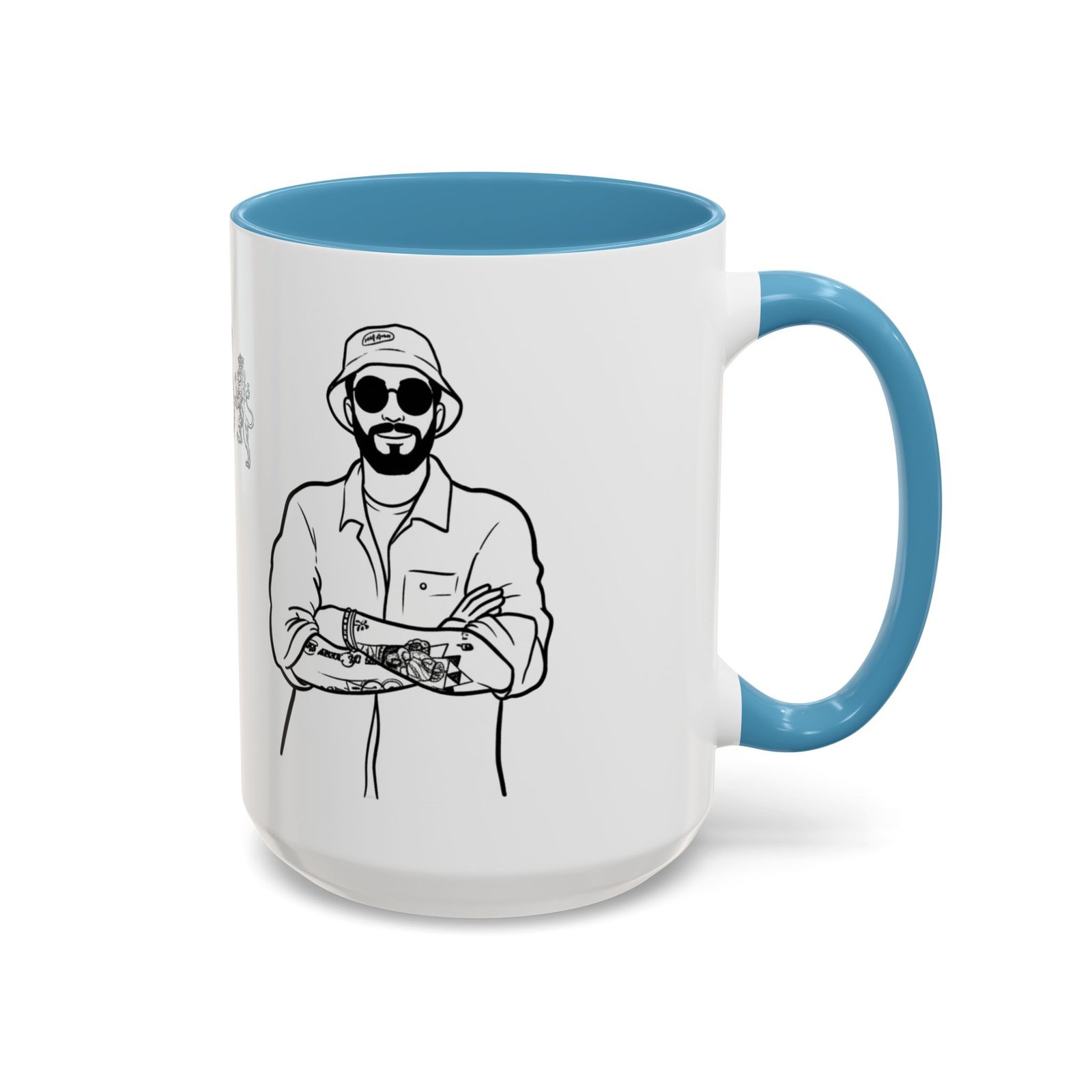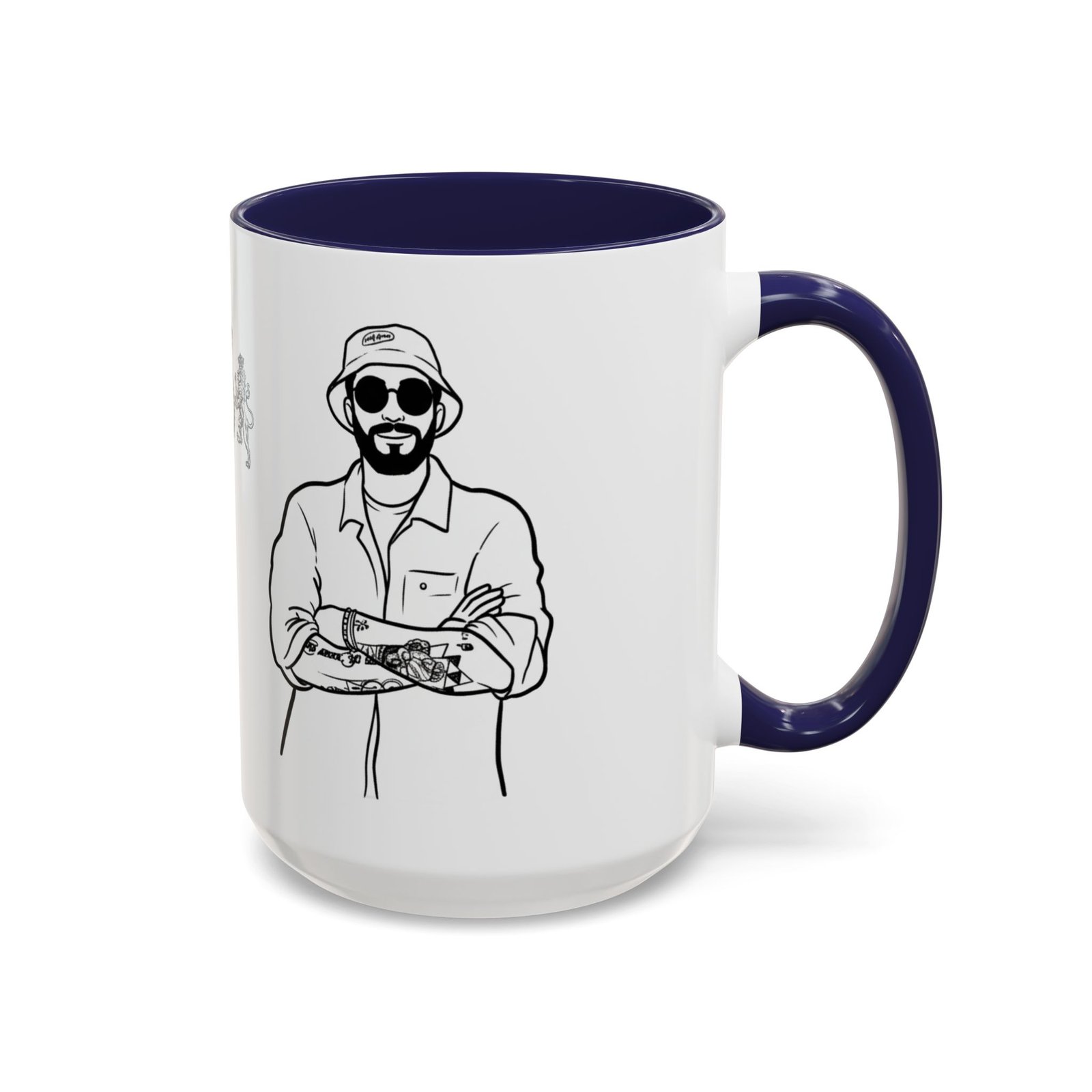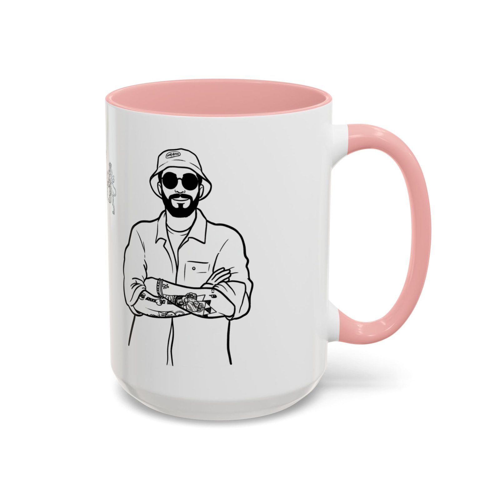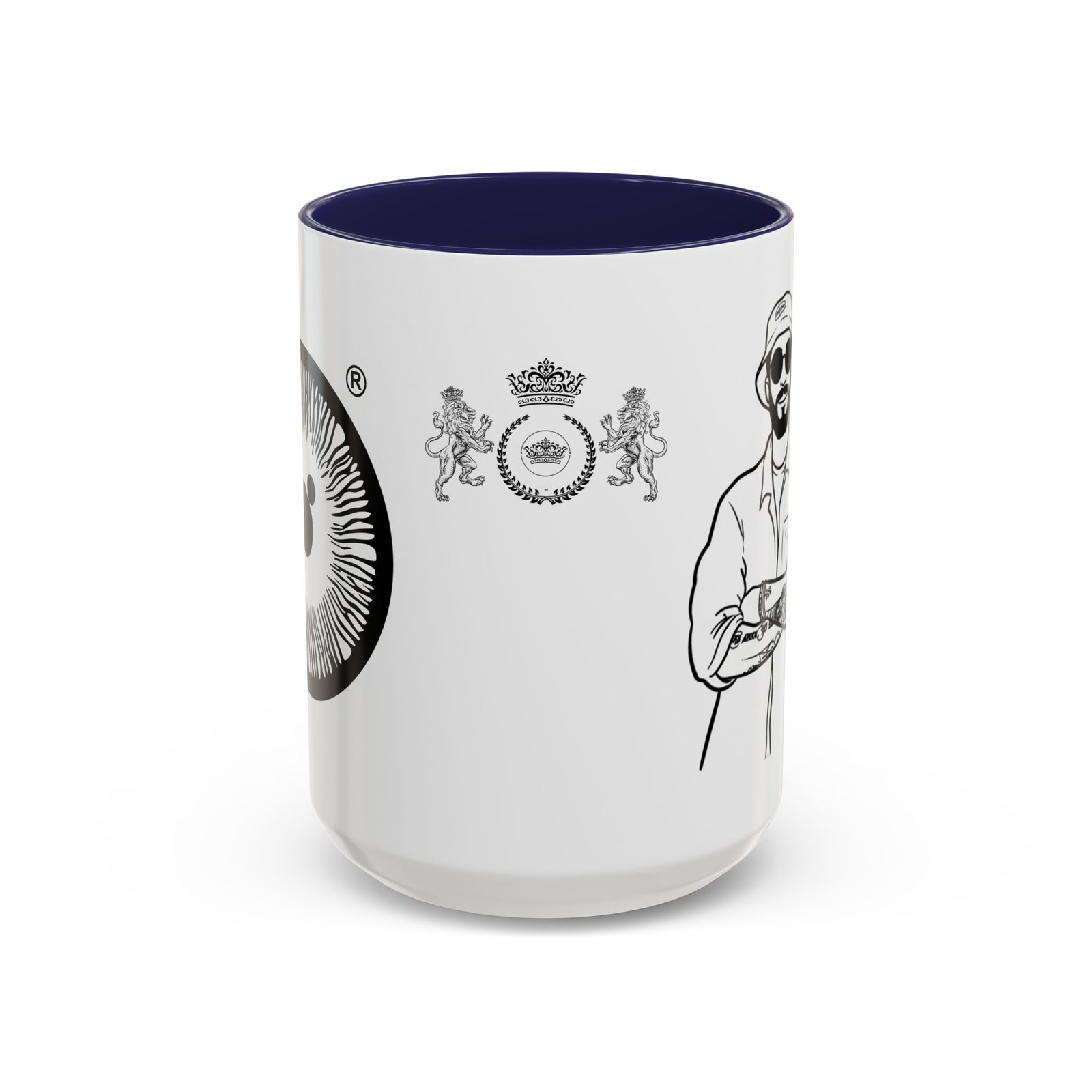 A glossy ceramic mug that brings quiet confidence to every coffee break. Clean black-and-white illustrations wrap the white exterior, while a bold colored interior and C-shaped handle add a pop of contrast. This mug feels like the studio corner where ideas form—steady, stylish, and ready for repeat use. It suits someone who savors ritual: slow morning sips, midday refuels, and late-night sketching sessions. The durable finish and vibrant printing hold up through daily use and dishwashing, keeping the line art crisp and the color contrast striking.